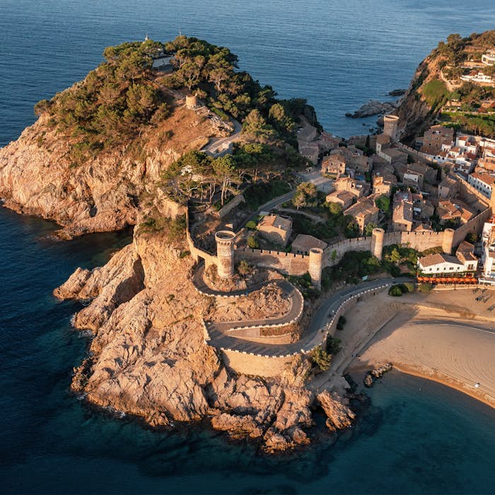 Tossa de Mar no le ha robado el sobrenombre de Perla de la Costa Brava. Esta estación balnearia con carácter encanta a los visitantes con su larga y ancha playa de arena dorada que conduce a un castillo medieval con fortalezas magníficamente conservadas. Detrás del Castillo, una muralla perimetral de 300 m de largo adornada con torres que ofrecen una magnífica vista de la ciudad, así como del mar, esconde el casco antiguo de esta famosa estación balnearia. Las casas medievales, las ruinas de la iglesia gótica de San Vincenç o las calles empedradas demuestran la riqueza del patrimonio cultural y arquitectónico local.